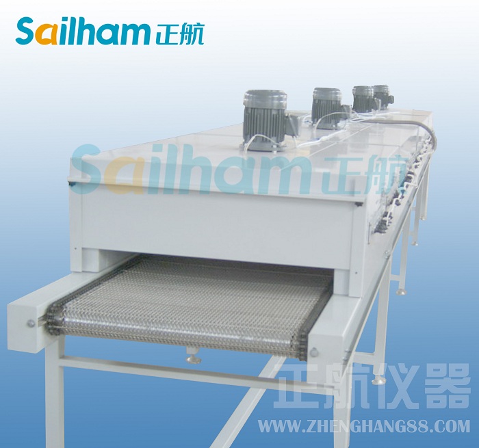 共分4段爐腔,每段爐腔總長2米.內(nèi)膽材質(zhì)采用1.2㎜厚鍍鋅板制作,設(shè)可調(diào)節(jié)檔板,中間100㎜厚高溫硅酸隔熱巖棉,網(wǎng)帶底部配有高溫隔熱層。使?fàn)t體外部不燙手.頂部配有進氣口和排氣口閥門,可調(diào)節(jié)爐內(nèi)排出空氣流量.