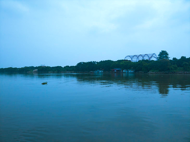 翌晨,2017年11月12日,我們分別租了單車(chē),繞洲而行。洲中綠景如茵,分布著果園、菜畦和瓜地,好一片農(nóng)家獨(dú)有的田園風(fēng)光。我們沿著主路騎行,路兩邊有的長(zhǎng)莎蔽徑,有的柳葉垂絳,九曲十八彎,世外桃園般的勝景盡收眼里。當(dāng)然,其中的樂(lè)趣離不開(kāi)小伙伴們的合作和嬉鬧。我們一起踩踏、一路高歌,有點(diǎn)瘋狂,平素的壓力在此刻得到釋放。我本楚狂人,鳳歌笑孔丘。